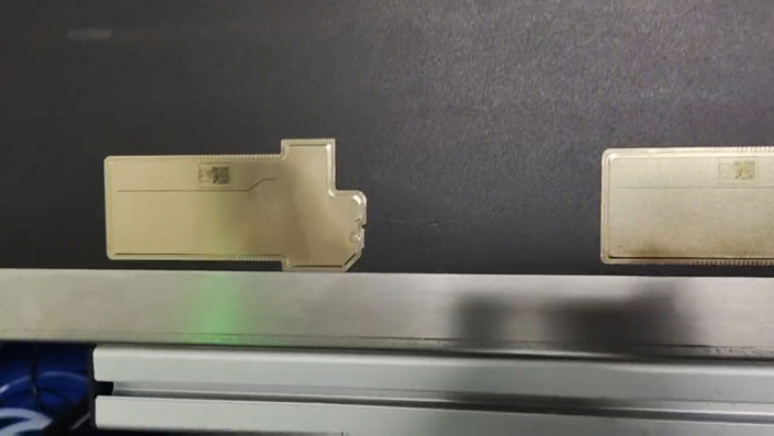 手機模組配件要在其玻璃材質(zhì)表面噴印二維碼、文本內(nèi)容,文本內(nèi)容與二維碼底色采用了白墨噴碼方式,二維碼采色黑墨,黑白對比,二維碼內(nèi)容更易識別。?對于光滑的玻璃表面,UV噴碼機噴印可以做到高附著力,高清晰,二維碼易識別的效果。