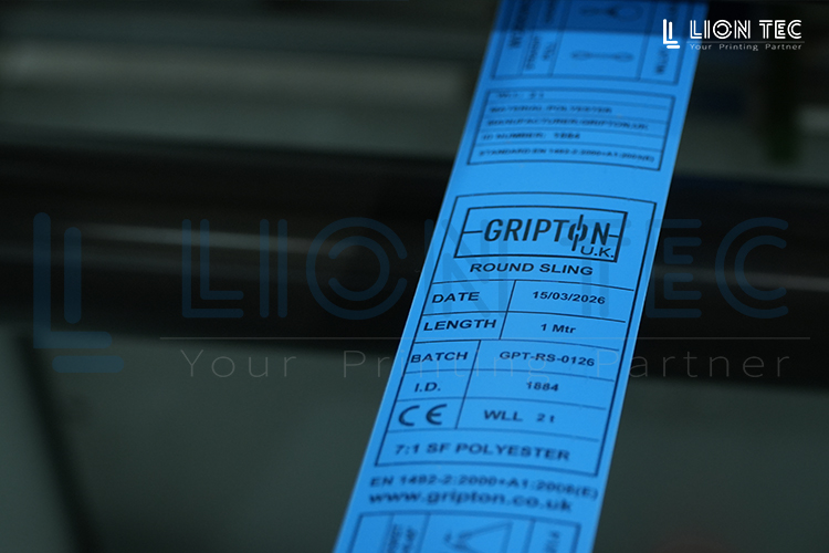 UV數(shù)字直噴:核心噴印單元采用多頭壓電噴墨技術(shù),直接在卷材上生成高黑度的安全參數(shù)表格與認(rèn)證標(biāo)志。藍(lán)底黑字對比強(qiáng)烈,耐油污、耐摩擦,符合EN1492標(biāo)準(zhǔn)的耐久性要求。