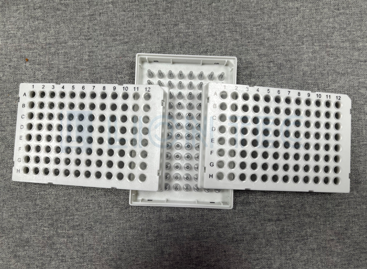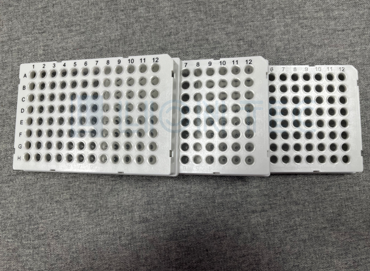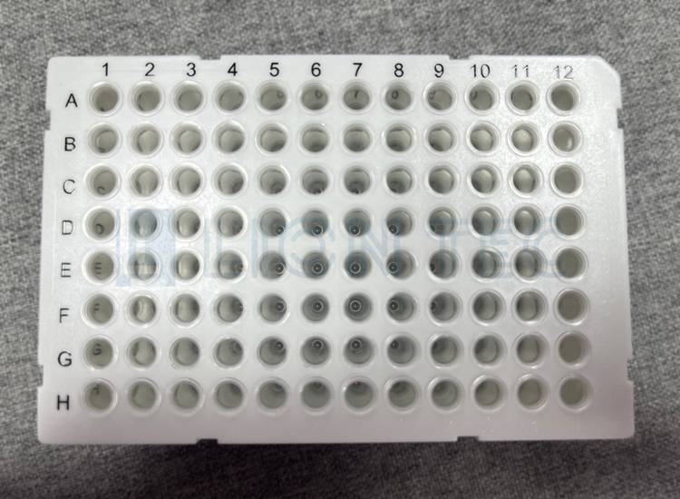 生物制藥公司客戶的聚丙烯(PP)材料樣品孔板PCR板通過藍(lán)茵UV噴碼機(jī)數(shù)字打樣的效果